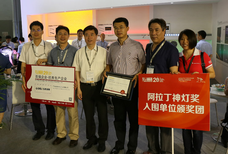 德洛斯榮獲20屆廣州國際照明展覽會----阿拉丁神燈獎·百強企業(yè)-優(yōu)秀生產(chǎn)企業(yè)