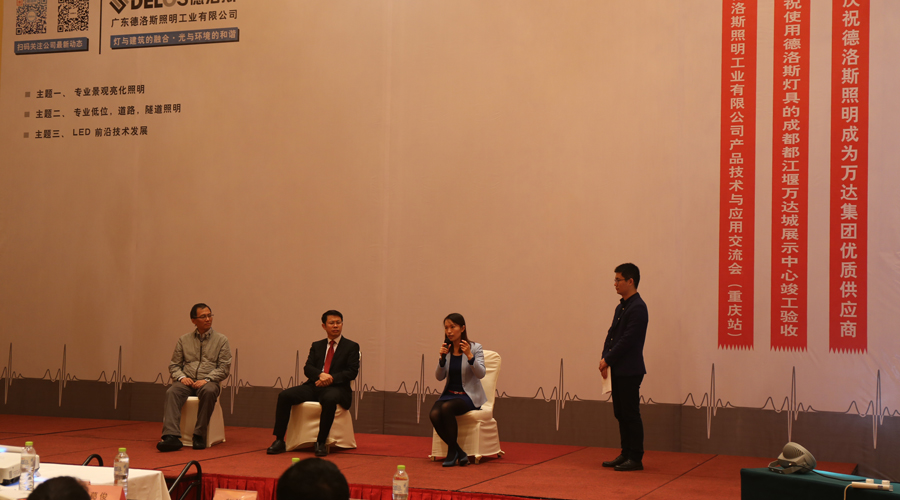 會(huì)議期間,德洛斯邀請(qǐng)了重慶照明學(xué)會(huì)理事長(zhǎng)——楊春宇教授,同時(shí)出席本次會(huì)議的嘉賓還有:重慶市設(shè)計(jì)院副院長(zhǎng)——周愛(ài)農(nóng),照明專家——?jiǎng)⒚飨壬?,照明專家——洪?guó)昌先生,重慶市設(shè)計(jì)院六分院院長(zhǎng)——葛俊先生,重慶市設(shè)計(jì)院六分院總監(jiān)——?jiǎng)⒎逑壬?,重慶市設(shè)計(jì)院——馮建平先生,林同棪國(guó)際咨詢公司道路交通所電氣總工——盛維女生,市政所電氣總工——韓亞剛先生,市政設(shè)計(jì)院電氣總工——?jiǎng)⑦M(jìn)宇先生,鐵二院重慶分院——牛夢(mèng)宇先生,歐司朗光電半導(dǎo)體(中國(guó))有限公司代表——余娜,德洛斯?fàn)I銷中心總經(jīng)理——郭大雄等。除此之外,各大設(shè)計(jì)院、媒體代表共200余人出席了本次會(huì)議。