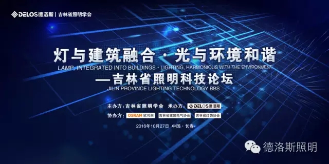 2016年10月27日,由吉林省照明學會主辦,廣東德洛斯照明工業(yè)有限公司(以下簡稱“德洛斯”)承辦,吉林省建筑電氣協會、歐司朗光電半導體(中國)有限公司、吉林省燈飾協會協辦的 “燈與建筑融合?光與環(huán)境和諧——吉林省照明科技論壇”在長春成功舉辦。本次會議廣泛邀請了行業(yè)專家、學者共謀照明發(fā)展大計,助力高效照明產品及解決方案的推廣應用。