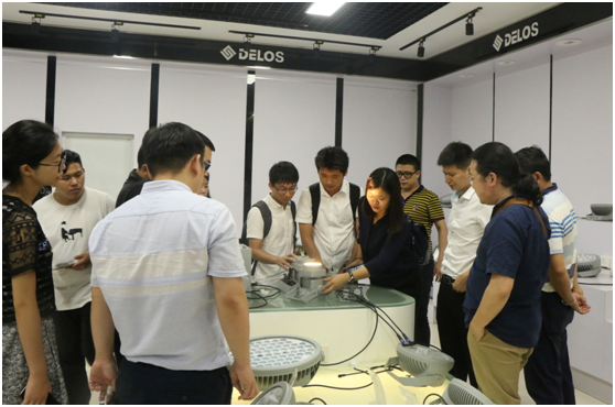 學(xué)員在參觀德洛斯照明產(chǎn)品展示廳和工廠