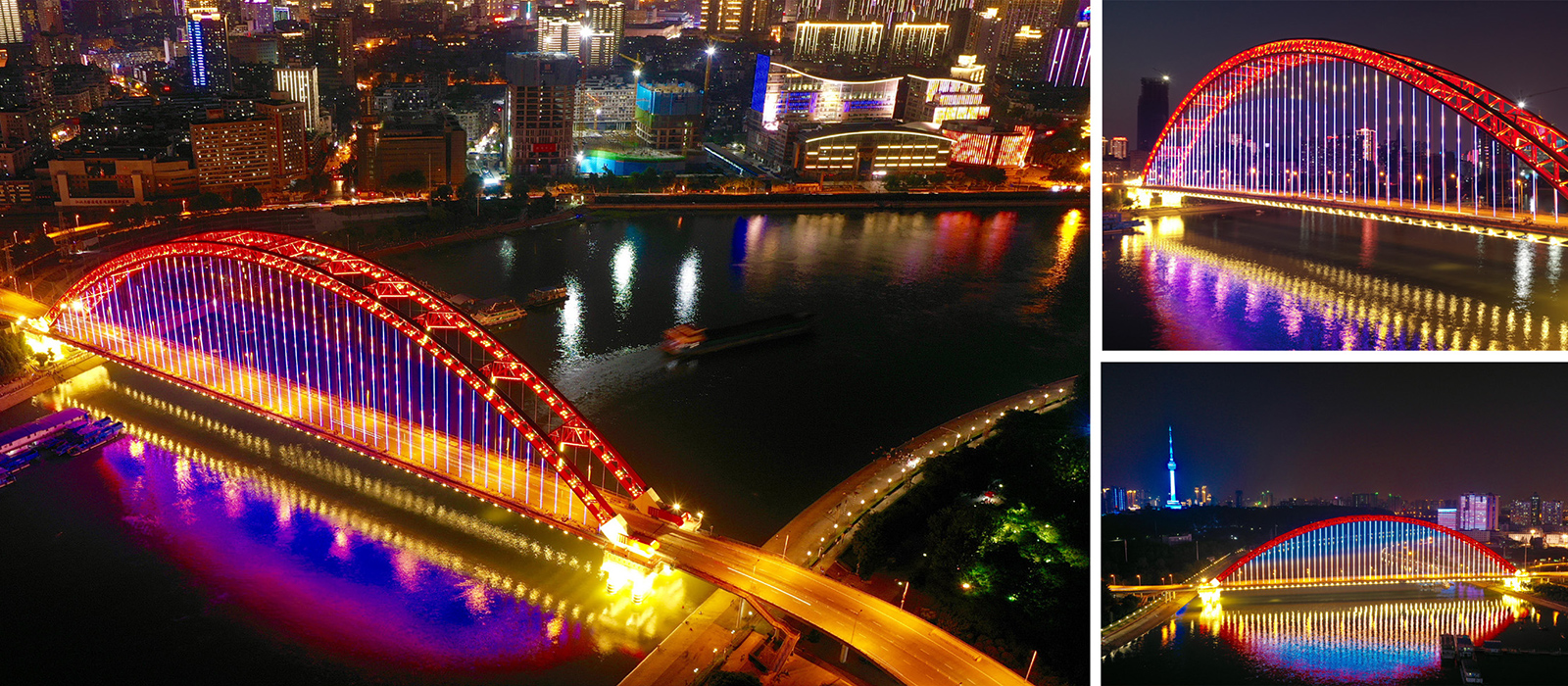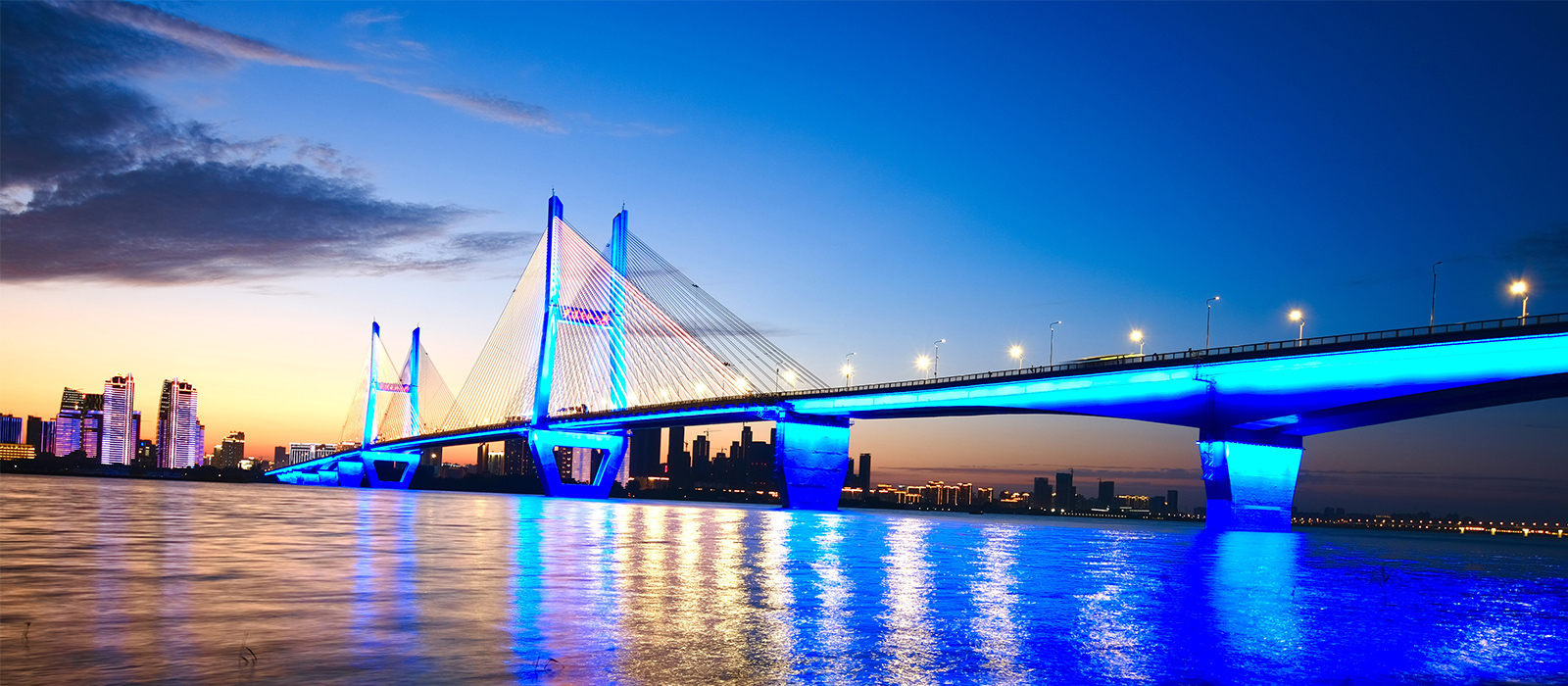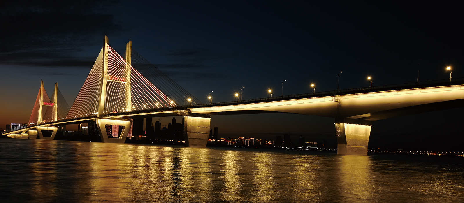 作為長江主軸橋梁的主創(chuàng)照明設(shè)計(jì)師,北京清華同衡規(guī)劃設(shè)計(jì)研究院有限公司李猛有自己明確的研究,據(jù)他介紹在橋梁設(shè)計(jì)之初,他借鑒了很多國內(nèi)外優(yōu)秀的橋梁設(shè)計(jì),例如橫濱海灣大橋、美國格雷厄姆陽光高架公路大橋、希臘哈里勞斯特里庫皮斯橋、荷蘭埃拉斯穆斯大橋等結(jié)構(gòu)形式與武漢橋梁相類似的橋梁,研究得出以上橋梁的主要照明設(shè)計(jì)手法是運(yùn)用光色及亮度的表現(xiàn)橋梁自身結(jié)構(gòu)之美;結(jié)合國內(nèi)發(fā)展現(xiàn)狀以及豐富市民夜間出行的重要總則,他認(rèn)為橋梁應(yīng)作為照明新媒體的承載面和重要的文化傳媒窗口,以智能科技新技術(shù)展現(xiàn)橋梁文化之美凸顯中國特色。