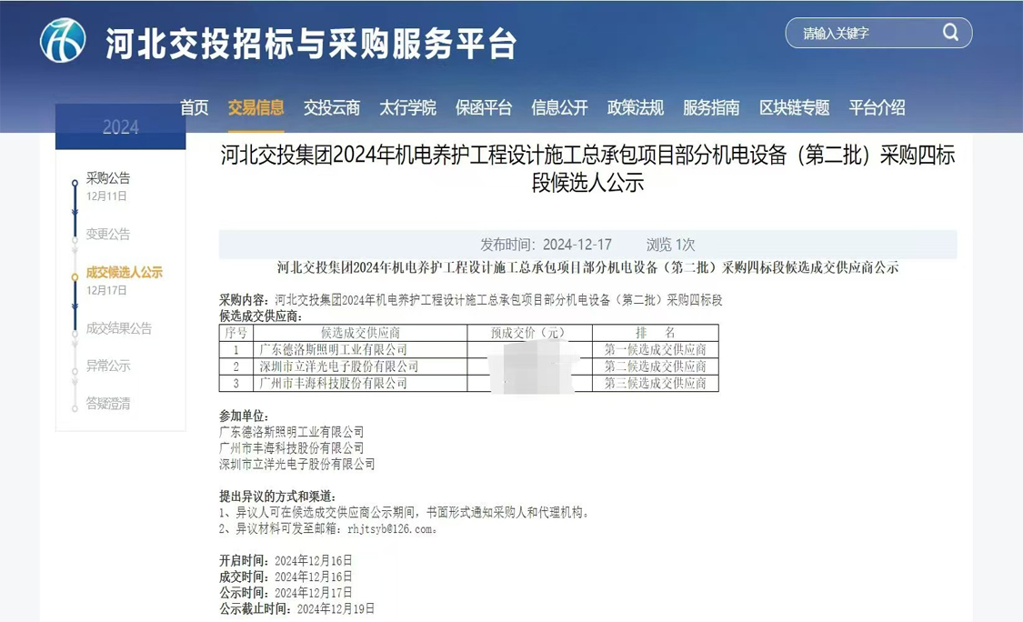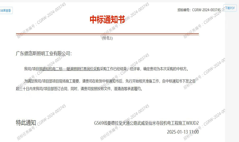 公司近期在多個(gè)關(guān)鍵項(xiàng)目中連續(xù)中標(biāo),包括河北交投集團(tuán)的機(jī)電設(shè)備采購(gòu)、湖北交投高速公路隧道機(jī)電設(shè)施提質(zhì)升級(jí)工程、四川路橋隧道燈采購(gòu)及武仙機(jī)電項(xiàng)目等,這些成就標(biāo)志著客戶對(duì)我們卓越實(shí)力與專業(yè)品質(zhì)的高度認(rèn)可。