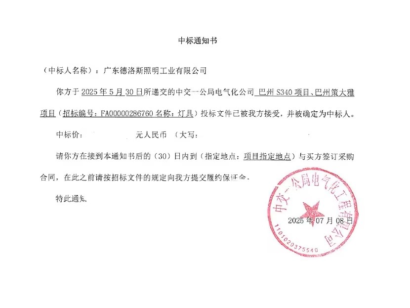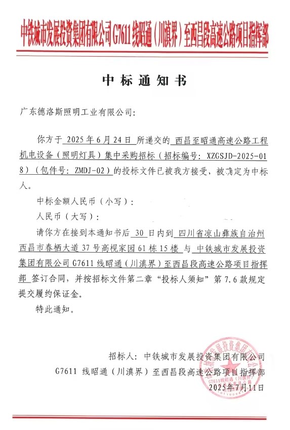 捷報(bào)雙至!德洛斯照明一舉中標(biāo)中鐵城市發(fā)展投資集團(tuán) G7611 昭通—西昌高速機(jī)電設(shè)備(照明燈具)集中采購(gòu),以及中交一公局電氣化公司巴州 S340、策大雅兩大項(xiàng)目燈具采購(gòu)。連中二標(biāo),既彰顯行業(yè)對(duì)公司產(chǎn)品與服務(wù)的高度肯定,更昭示德洛斯護(hù)航重大工程的硬核實(shí)力。未來(lái),我們將以更高標(biāo)準(zhǔn)、更優(yōu)品質(zhì),為項(xiàng)目全線(xiàn)亮燈、如期通車(chē)保駕護(hù)航。