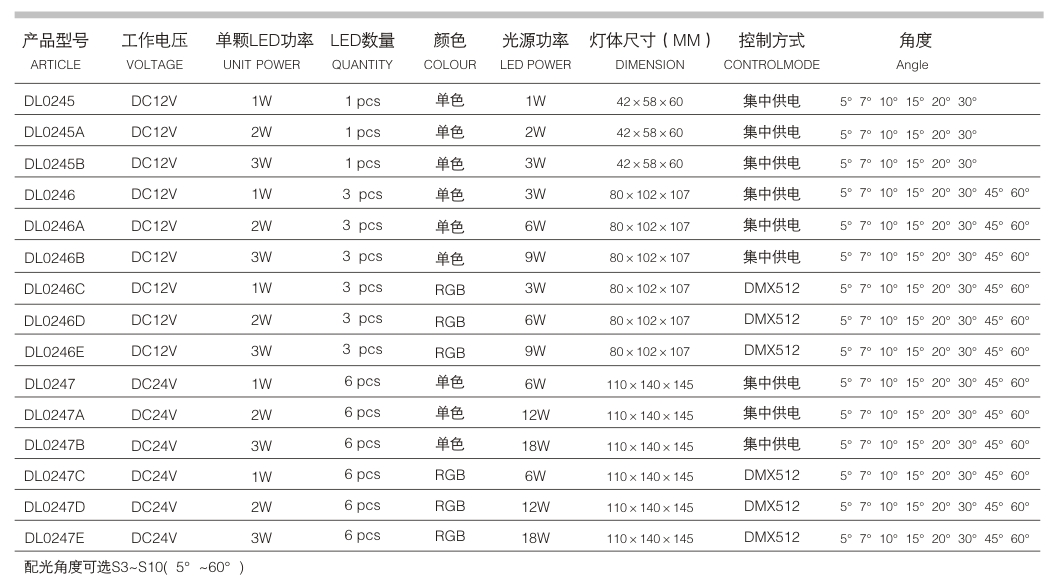 >>燈具可多個(gè)角度透鏡選擇,透鏡角度最小可達(dá)5度,聚光效果極佳;