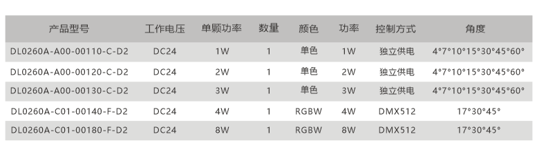 ◆ 光束角配光可選:4° 7°10°15°30°45°60°